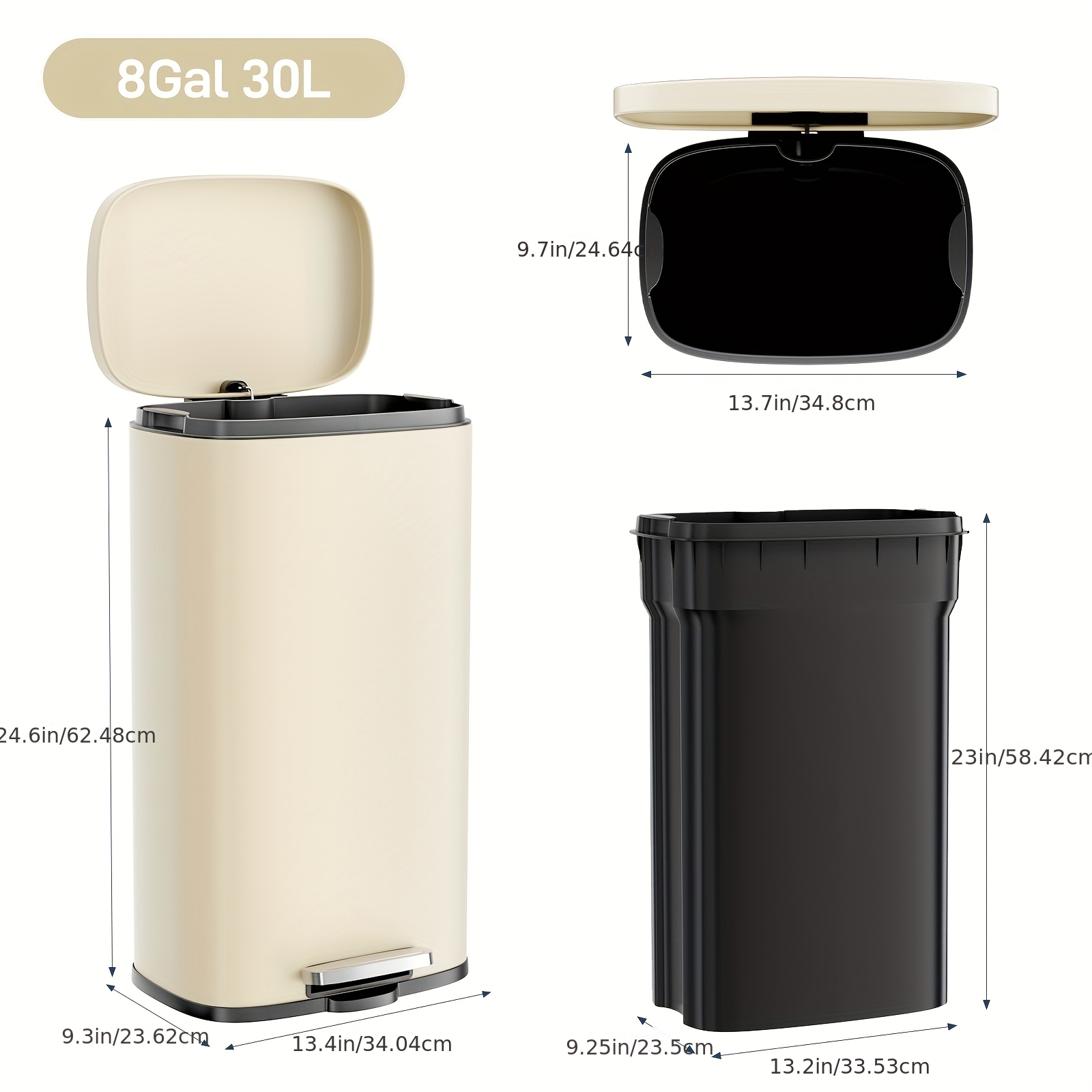 8 Gallon Step Trash Can, Stainless Steel Garbage Bin, Soft-Close Rubbish Bin With Removable Plastic Inner Bucket, Fingerprint-Proof, Lid Dustbin, Suit For Kitchen Home (30L)