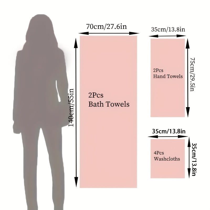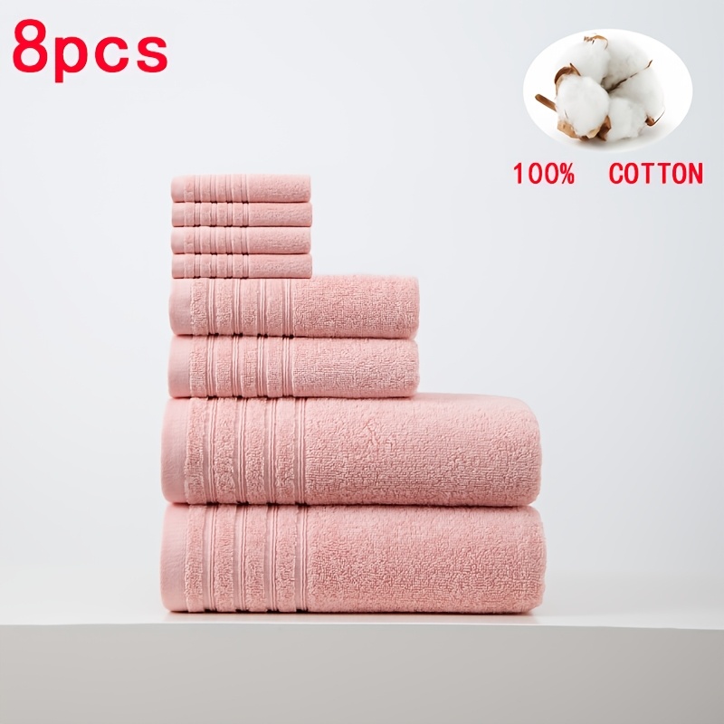 8pcs 100% Cotton Towel Set, Soft Quick-Dry Fluffy Bathroom Set, 400 Gsm, 2 Bath Towels+ 2 Hand Towels+ 4 Washcloths, All Seasons, Multiple Colors, Suitable for Hotels, Swimming, Gym, SPA