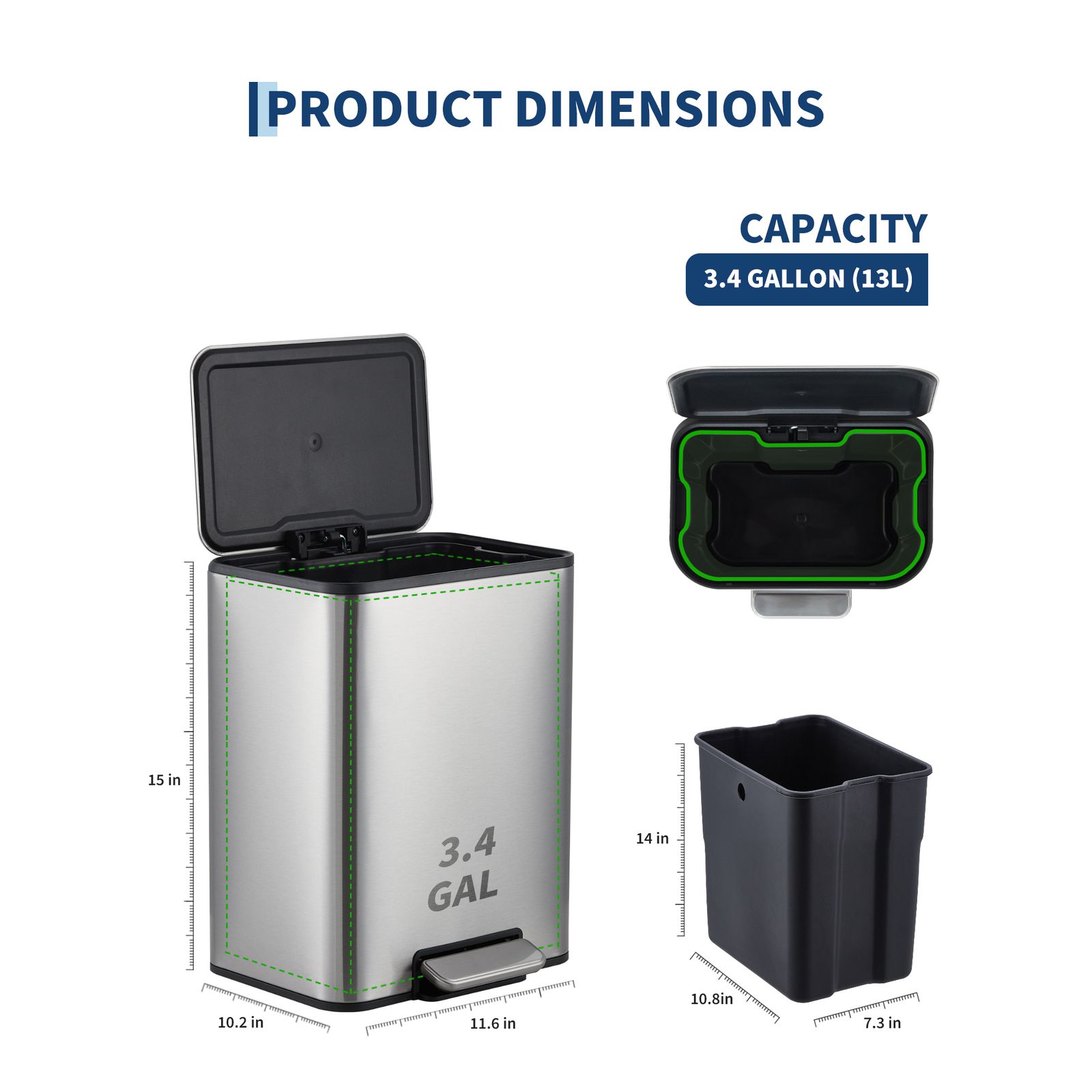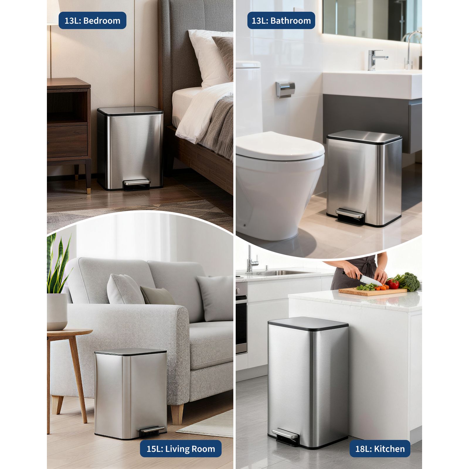 Steel I628 Step Trash Can, Modern Kitchen Waste Bin with Pedal, Odor-Control Household Garbage Can, Touch-Free Design